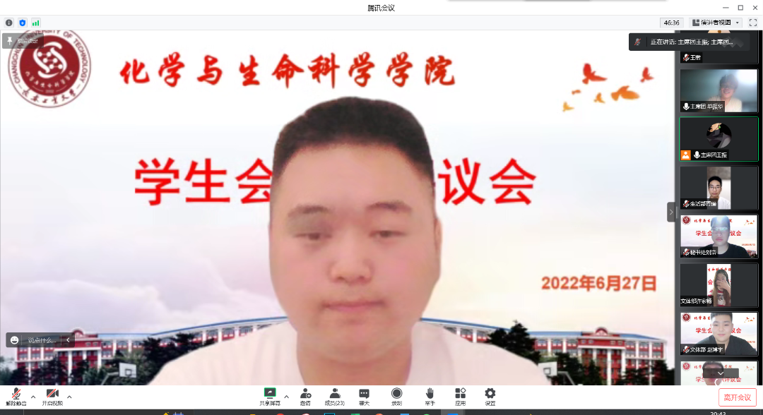 为深入推进学院学生会组织改革,全面加强对学院学生会工作人员的管理,提高学院学生会工作人员服务同学的意识和履职能力,做好学院学生会工作人员考核评价工作,6月27日,学院学生会在腾讯会议组织召开2021-2022年度第二学期学生会工作人员述职评议会。学院团委书记张鹏,学生会全体成员参加会议。