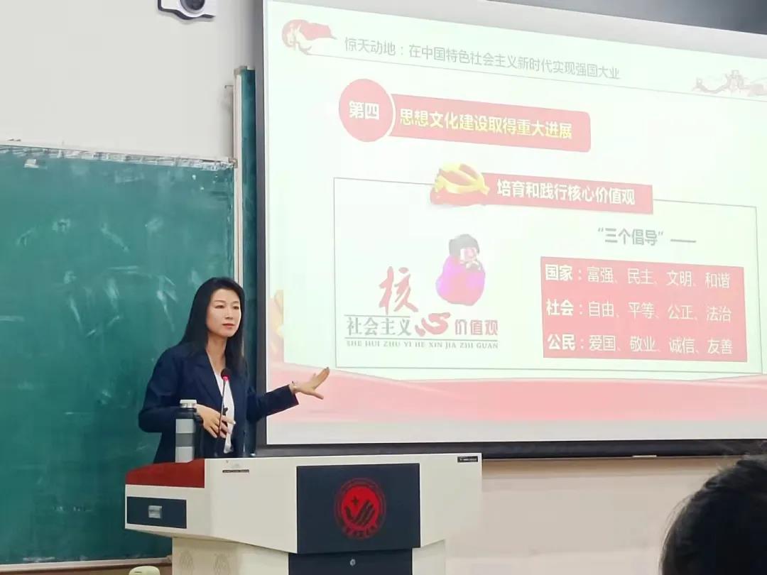 新闻网讯(通讯员:由萌 马静为了深化爱国主义精神,不断丰富教育内容,创新教育载体,增强教育效果,亚洲色图 于10月27日在北湖校区西区西阶302教室开展“党史”教育学习报告。本次报告由马克思主义学院张鸿冰老师主讲,2021级全体同学参加。