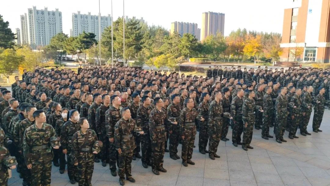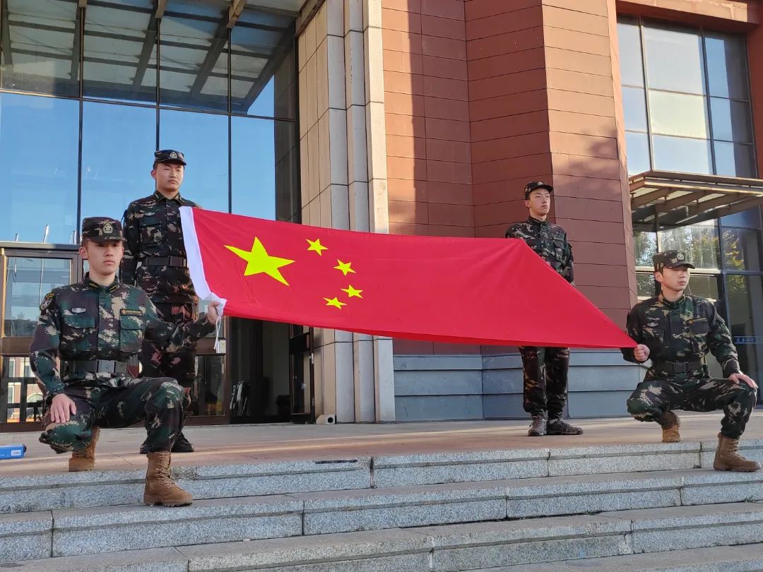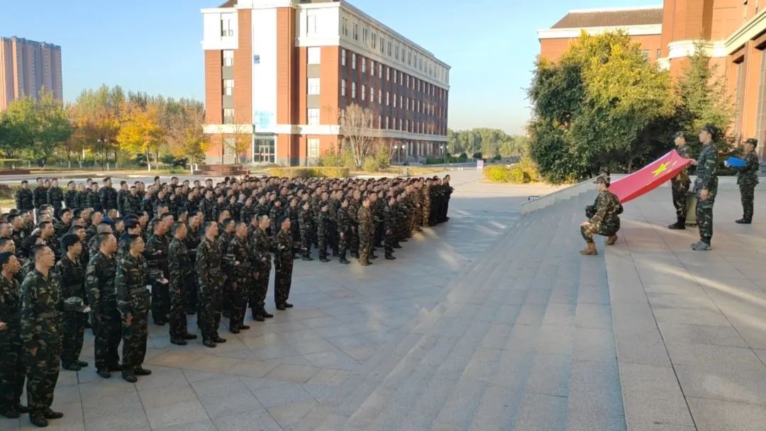 与化学工程学院2023级全体师生于10月17日在北湖西区主楼前,庄严举行升旗仪式。在全体师生的庄重注目下,迷彩先锋队队员护送鲜艳的五星红旗进场。