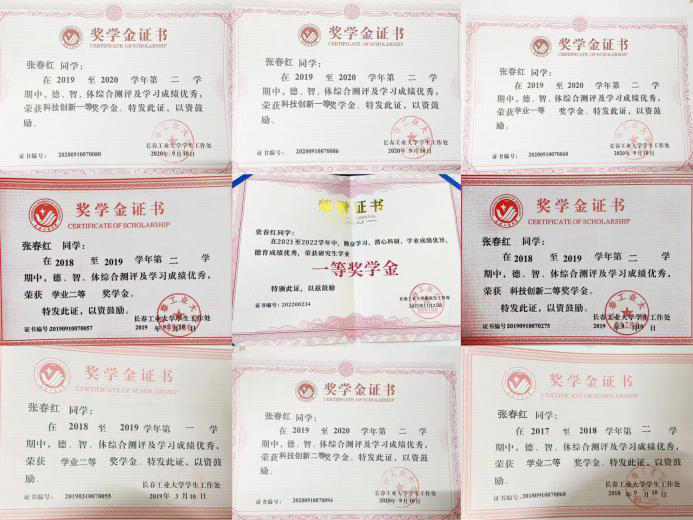 2019年11月,张春红当选为第二届全国百佳心理委员,并入选“全国百佳心理委员论坛”成员,其主办的“晨曦心理树洞”事迹被全国毫末高校心理委员工作平台报道;2019年,她作为负责人带领团队参加第十二届中国东北亚博览会志愿服务工作,其相关志愿服务活动被文明新长春等相关媒体报道;2022年,她所带领的“碳”赢未来项目团队荣获“挑战杯”大学生创业计划竞赛特等奖,其项目相关荣誉被工大青年等平台进行报道,其作为学生代表在亚洲色图