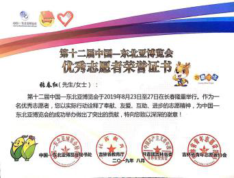 同时她参与学校与政府组织的志愿服务活动,曾作为英语组负责人带领团队参加第十二届中国东北亚博览会以及第四届全球吉商大会的志愿服务工作,累计接待外国团6支,完成英语翻译工作400余次,特此获第十二届中国东北亚博览会“优秀志愿者”荣誉称号;