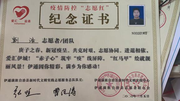 优秀志愿者标兵称号。2022年,新冠疫情席卷吉林,作为学生党员、学生干部,他始终坚守共产党员的初心与使命,毅然承担起了学院志愿者工作负责人及寝室楼宇负责人等工作。