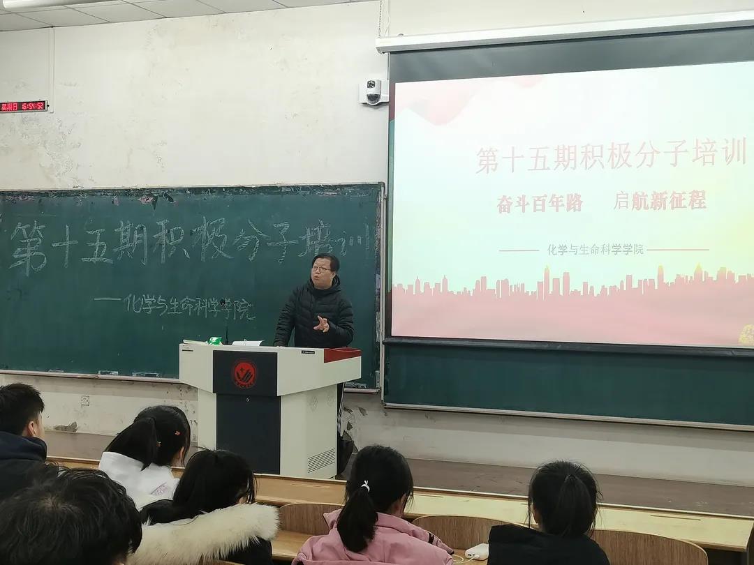 新闻网讯(通讯员 卢泓妍为加强对入党积极分子的培养、教育和考察,帮助入党积极分子不断提高思想理论水平,确保新党员发展质量。12月12日下午,亚洲色图 分党校于北湖校区西区西阶101教室召开第十五期积极分子培训班。本次党课由研究生党支部书记张烨主讲,2020级入党积极分子参与党课。