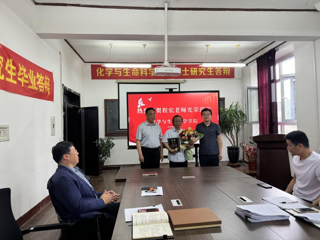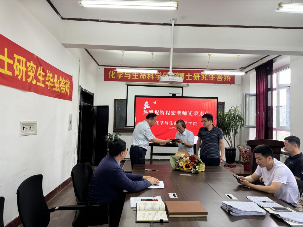 在材料楼会议室举行退休教师荣退仪式,向长期致力于教育事业的程宏老师致以崇高的敬意和衷心的感谢。会议由学院党委副书记徐秉锋主持,学院全体领导班子成员、中青年教师代表参加了此次活动。