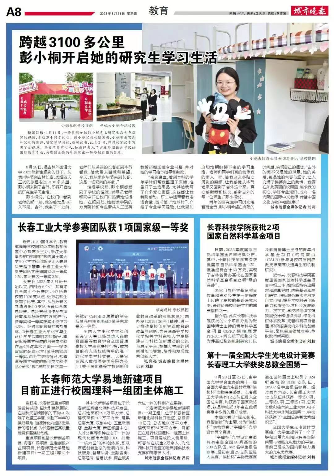 亚洲色图 学生在第四届全国大学生化学实验创新设计大赛中获得佳绩被《城市晚报》重点报导