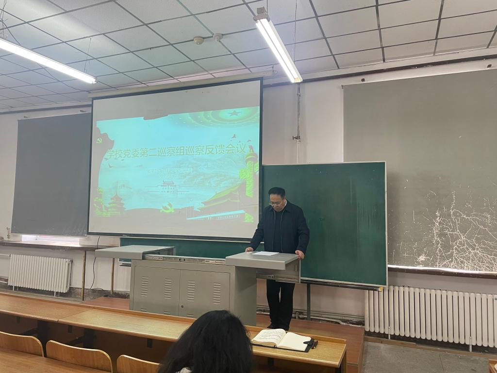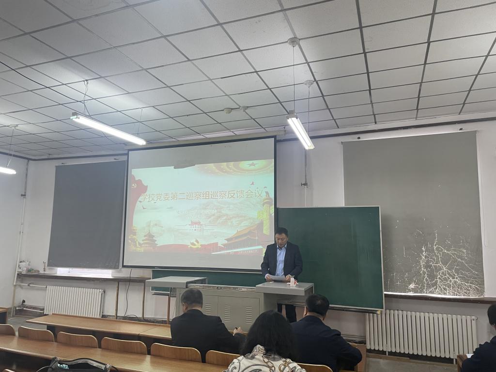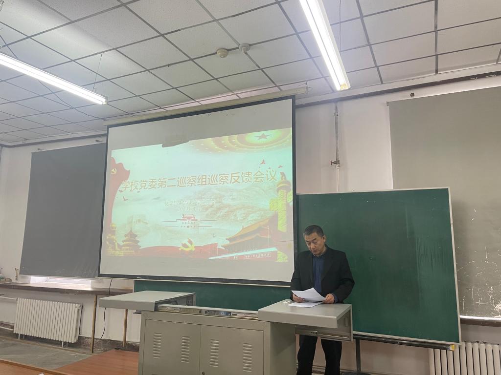 党委第二巡察组组长李海峰传达了学校党委书记、巡察工作领导小组组长孙长智同志关于巡察工作的讲话精神:一是政治站位再提高,高标准推进巡察整改工作;二是整改责任再压实,高质量完成巡察整改任务;三是整改监督再强化,形成巡察整改合力;四是整改效果再提升,推动学校事业高质量发展。