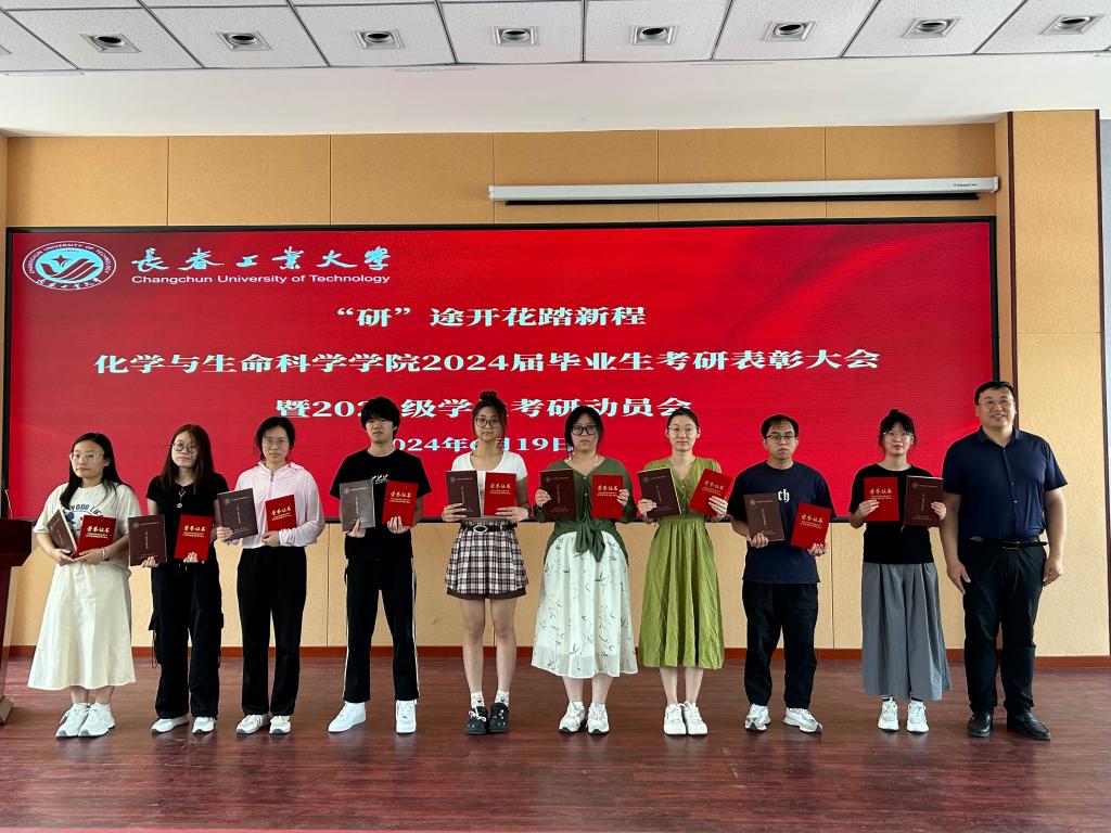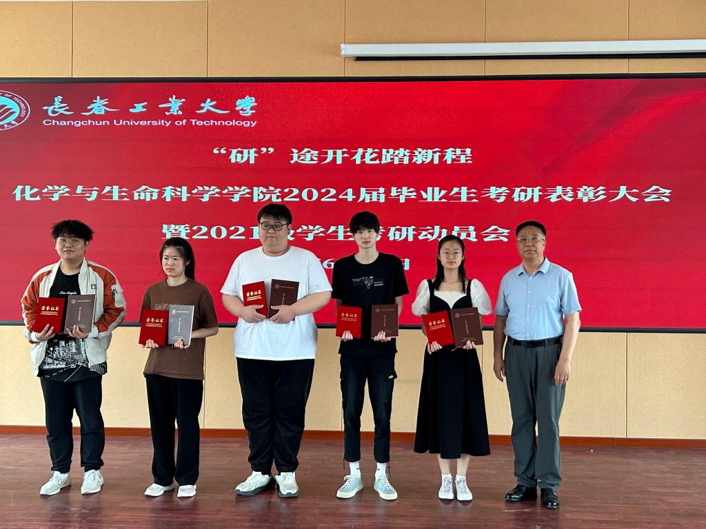 2024届毕业生考研表彰决定》,希望受表彰的同学们珍惜荣誉,再接再厉,勇攀科学高峰,为母校争取更大的荣誉。同时希望低年级全体同学以这70名学子为榜样,勤奋学习,刻苦钻研,一锤接着一锤敲,一步紧跟一步行,用勤奋和汗水全面提高自身的综合素质,以拼搏和奋斗精神不断向更高的学术境界攀登,争做德、智、体、美全面发展的优秀大学生。最后领导为受表彰学生进行颁奖留念。