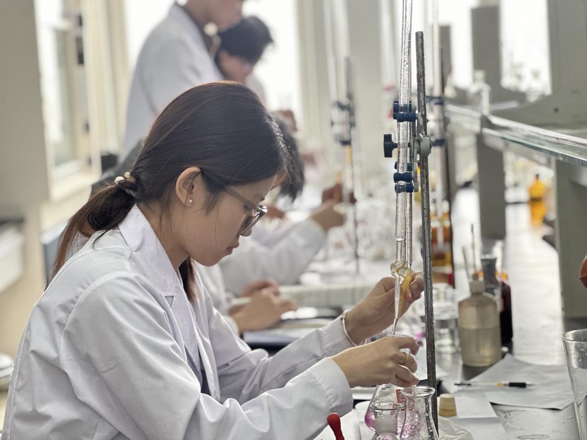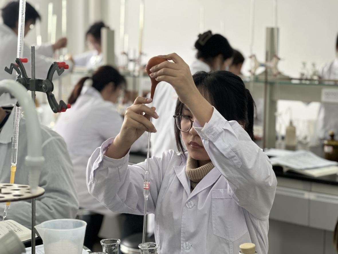 学生实践操作的能力,加深了他们对分析化学核心技术和技巧的理解。此外,学生们不仅锻炼了观察力和思维能力,还为未来的科研探索奠定了稳固的基石。这充分展示了化生学院学子追求卓越、勇于开拓的学术风貌。