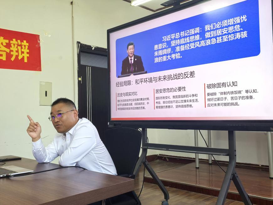 9307会议室,为2022级本科生讲授一节“扎根基层,向北生长”主题思政课。赵洲洋从老一辈学者的“国之所需,先生所赴”,到当代青年的“扎根基层,向北生长”,为同学们指明了参与东北振兴与规划未来的方向。