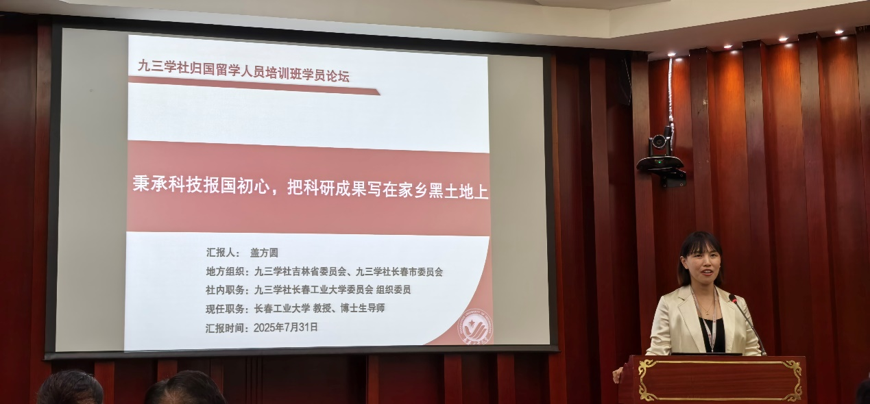 组织委员。多年来,盖方圆教授一直深入产业一线,本次学员论坛发言从科技报国、聚焦产业、双岗建功几个方面分享了我省九三学社工作成果和她的个人科研实践。