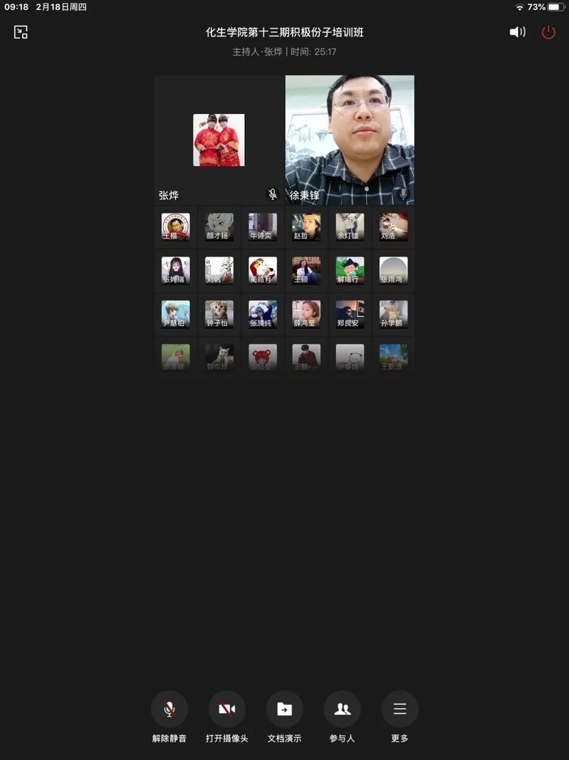 新闻网讯(通讯员:臧颖)为进一步加强入党积极分子的培养、教育和考察,提高入党积极分子的思想政治素质。2月18日,利用网上会议模式,亚洲色图 第十三期入党积极分子培训班成功举行开班仪式。院党委副书记徐秉锋、团委书记张鹏、研究生党支部书记张烨、学生党支部书记侯天放出席此次会议,亚洲色图 入党积极分子参与了此次会议。