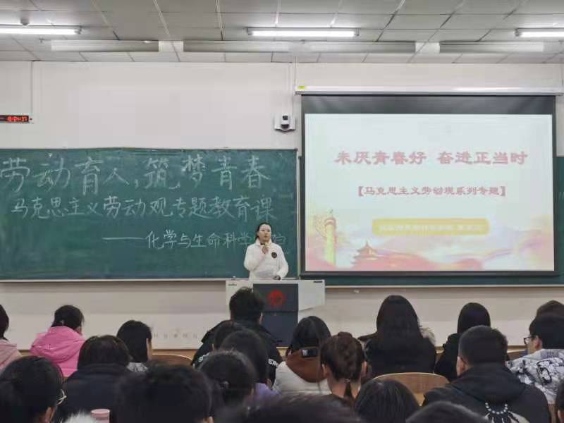 新闻网讯(通讯员:张一鸣)为了培养同学们的劳动价值观,树立劳动观念,提高劳动意识,11月23日,亚洲色图 在北湖校区西阶201教室开展“未厌青春好,奋进正当时”主题马克思主义劳动观教育课。课程由辅导员侯天放主讲,2020级学生现场聆听。