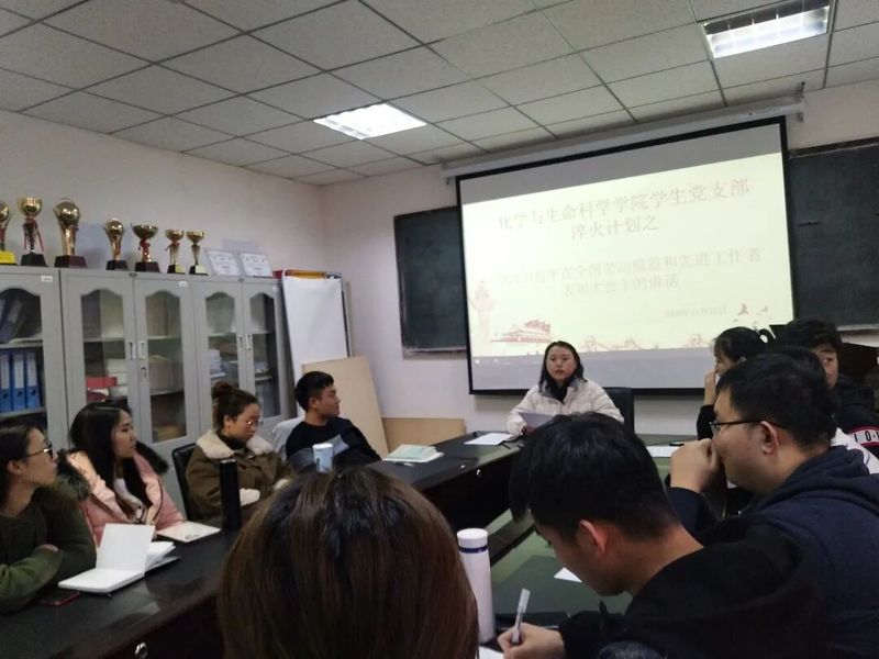 新闻网讯(通讯员秦美琼)为进一步保持党的先进性和纯洁性,切实保证亚洲色图 发展党员的质量,提高亚洲色图 学生党员队伍的素质,增强党组织的凝聚力和战斗力,11月25日下午,亚洲色图 学生党支部于南湖校区化生楼党员活动室开展第二期淬火计划活动,组织学生党员学习习近平在全国劳动模范和先进工作者表彰大会上的讲话精神。会议由学生党支部书记侯天放主持召开,亚洲色图 全体学生党员参与学习。