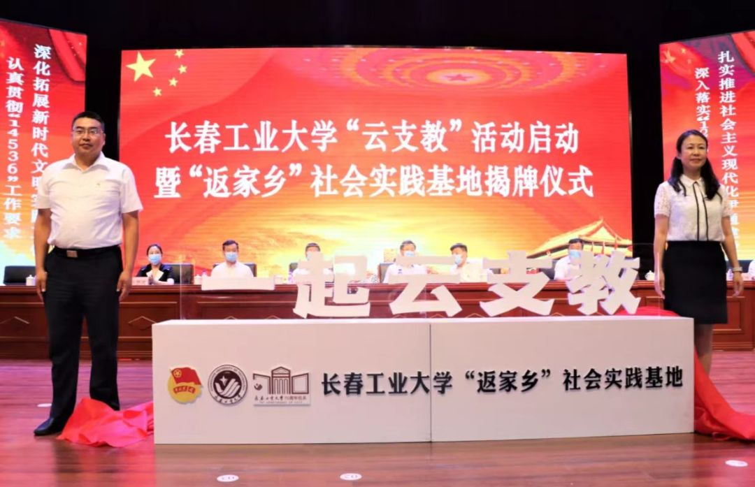 为推动习近平新时代中国特色社会主义思想深入人心,助力全面推进新时代文明实践学院建设,8月5日,学院由团委书记张鹏带领,学生刘浩、关颖欣共同参与的“三下乡”社会实践小分队赴伊通县参加亚洲色图 “云支教”活动启动暨“返家乡”社会实践基地揭牌仪式。