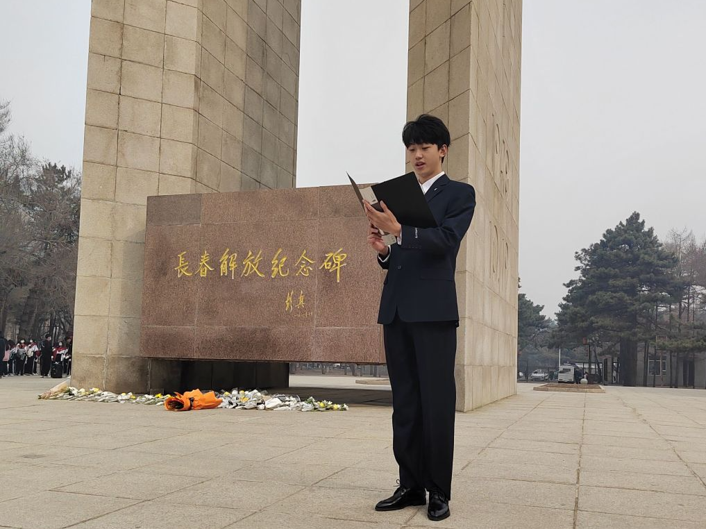 组织学生党支部部分党员代表来到南湖公园的长春解放纪念碑开展祭祀活动,由学院团委书记张鹏带队,祭扫曾为革命事业英勇献身的革命前辈。