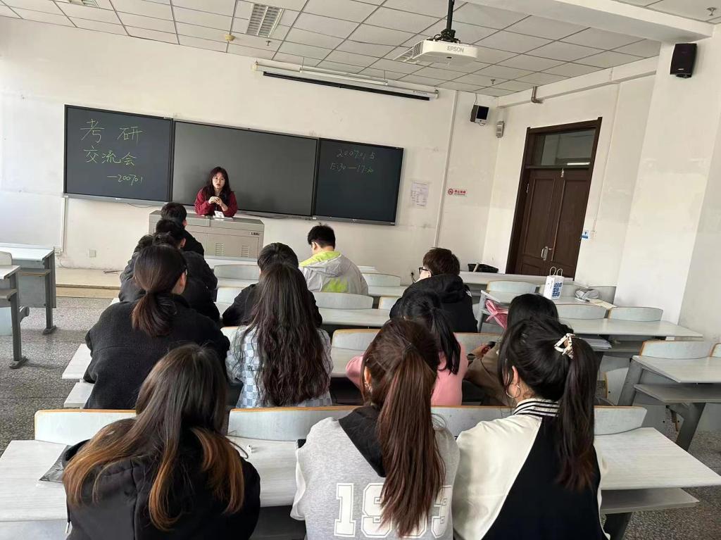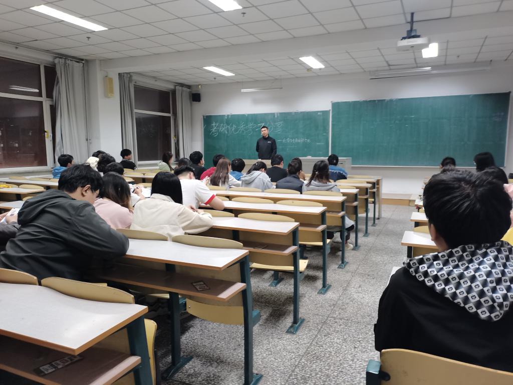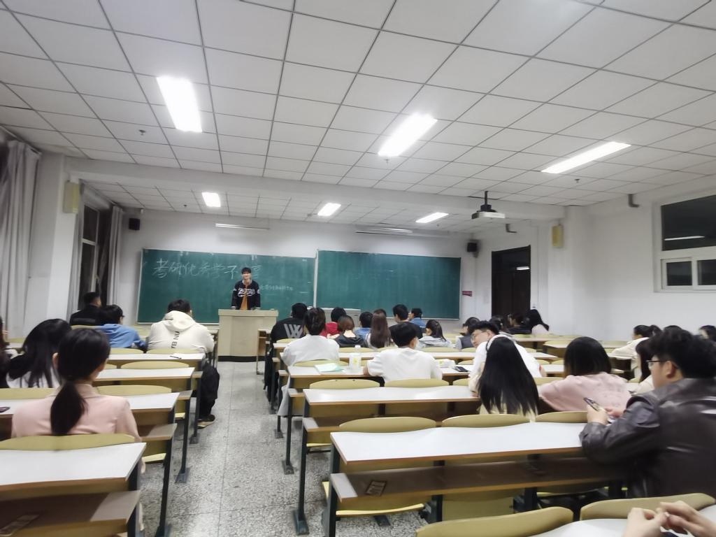 于近日在南湖校区科研楼教室召开了考研分享交流会。此次会议由2019级优秀考研学生代表进行经验分享,2020级备战考研的同学参加会议。