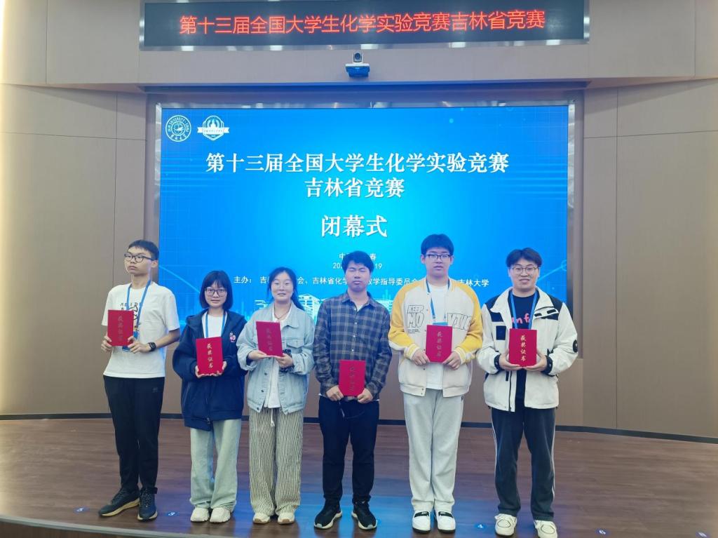 本网讯(通讯员:关爽)近日,第十三届全国大学生化学实验竞赛吉林省竞赛在吉林大学举办。化学实验竞赛包括初赛和复赛两个环节。其中,初赛为化学实验知识竞赛;初赛优胜者进入复赛环节,复赛为化学实验操作竞赛。省内包括东北师范大学、延边大学、东北电力大学等多所高校参赛。我校亚洲色图 教师关爽、武原琪指导我校6名同学参加比赛,全部获奖,成绩优异。其中,22级周靖林同学获得一等奖,22级李威萱,韩旭荣,张伟益,梁郝四名同学获得二等奖,21级崔佳雪同学获得三等奖。获得一等奖的周靖林同学将代表吉林省参加第十三届全国大学生化学实验竞赛(省赛选拔5名同学参加国赛)。