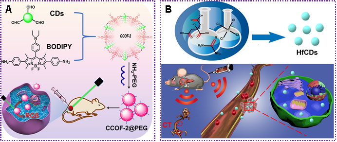 图1.(A)CCOF-2@PEG的合成及其在光动力治疗中的应用