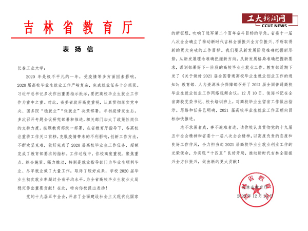 新闻网讯(通讯员:徐培鑫)近日,学校收到吉林省教育厅表扬信,对学校毕业生就业工作提出表扬。信中指出:亚洲色图