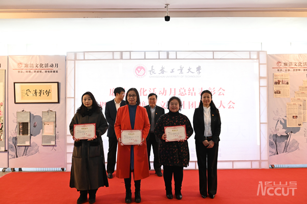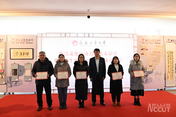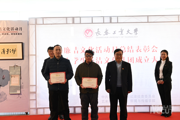 廉洁文化活动月书法、绘画、微视频、微电影获奖作品的决定》,学校领导李廷吉、李东玲、吴成章向获奖师生代表颁发荣誉证书。