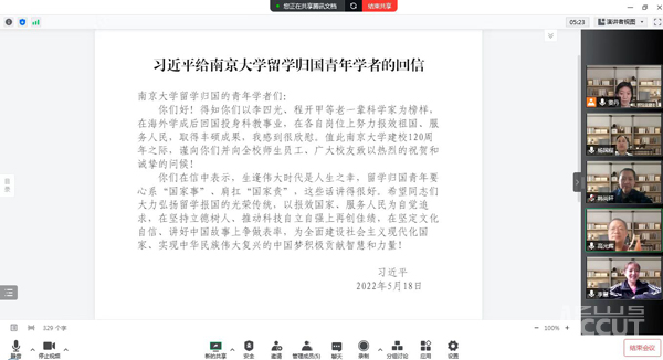 新闻网讯(通讯员 马旭、姜丹)5月26日下午,学校以线上线下相结合的方式,召开学习贯彻习近平总书记给南京大学留学归国青年学者回信精神座谈会。学校党委书记孙长智出席会议并发表讲话。学校欧美同学会·留学人员联谊会常务副会长、副校长林洁琼作交流发言。党委常委、统战部部长郭立祥主持会议。学校党委常委、部分留学归国人员代表参加了会议。