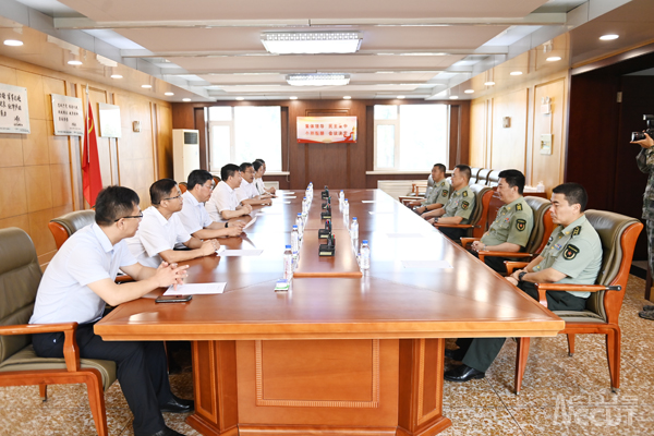 随后,学校慰问团来到长春警备区,受到司令员于学东、副司令员李岩等部队首长的热情接待。党委书记孙长智代表学校党委送上全校师生对部队全体官兵在建军95周年之际的节日祝福和美好祝愿,向长春警备区一直以来对学校武装工作的大力支持和对贫困学生捐资助学表示诚挚的感谢,对全校师生戮力同心抗击疫情做了介绍,也发出了对警备区首长来我校参加建校70周年庆典活动的邀请。警备区首长对学校领导一行慰问表示热烈欢迎,于学东司令介绍了警备区在征兵工作、双拥共建,抗击疫情方面上取得的喜人成绩,并感谢学校多年来对警备区各项工作一如既往的支持,表示今后将继续加强共建合作,为双拥共建注入新的活力。