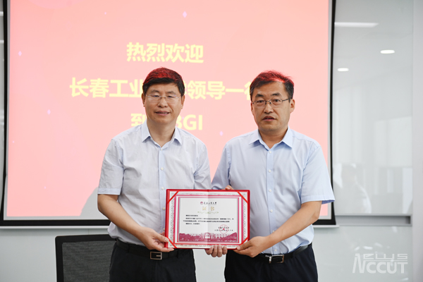 孙长智代表学校向刘忠范院士赠送主楼楼模