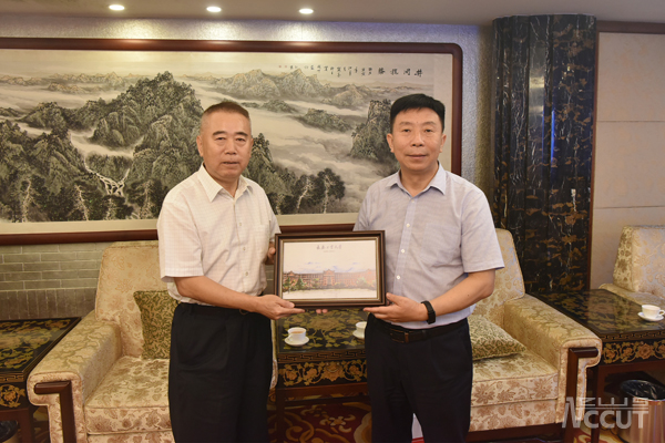 孙长智、张明耀一行同校友们进行了亲切热烈的座谈,和中国职工之家达成了初步校企合作意向,并向王瑞生等校友赠送校庆纪念品。
