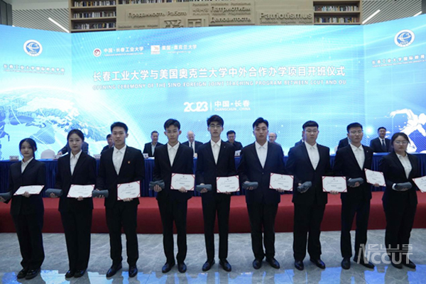 仪式上学院对2023年度在科技创新活动取得突出成绩的张晋宁等13名“科技标兵”以及张馨月等31名“科技能手”予以表彰。在场领导为受表彰的同学颁发证书和美国奥克兰大学为获奖同学准备的纪念品。